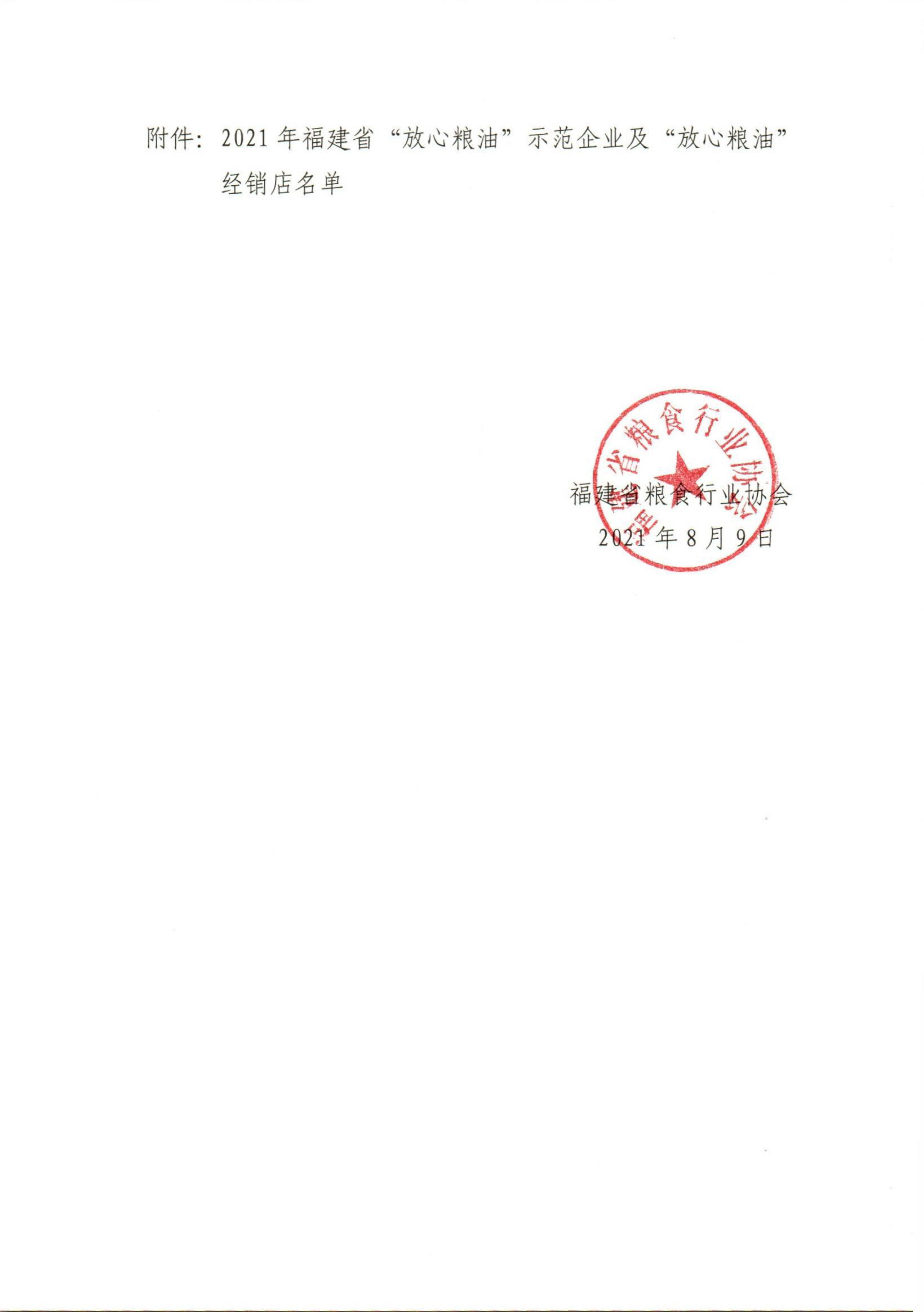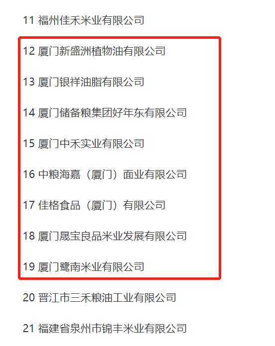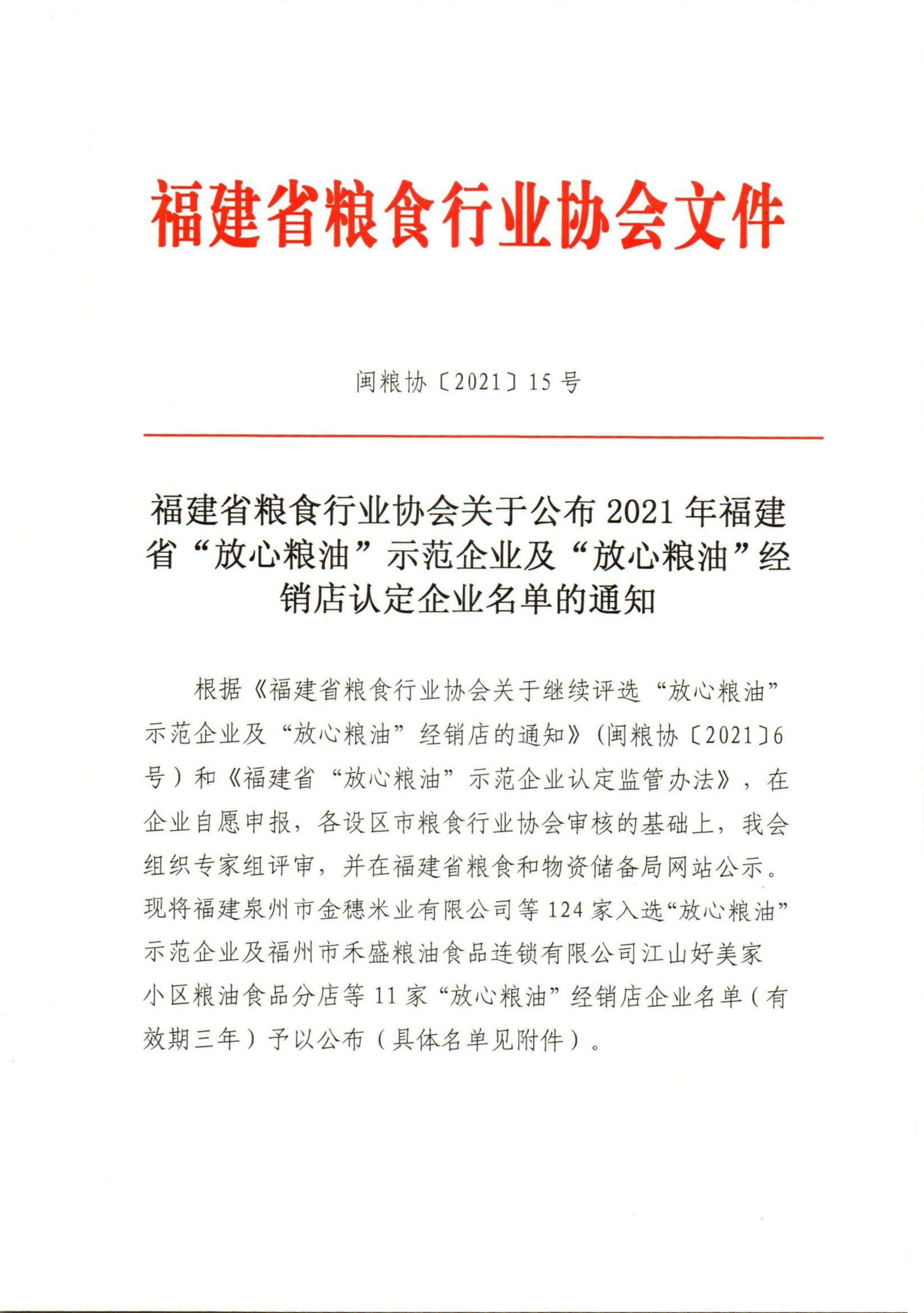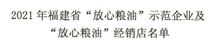 喜讯 | 2021年省级“放心粮油”示范企业及“放心粮油”经销店认定结果公示 厦粮协13家会员企业上榜
