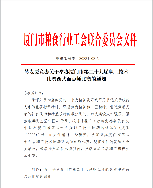粮协通知 | 转发厦竞办关于举办厦门市第二十九届职工技术比赛西式面点师比赛的通知